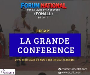 Les 6 et 7 mars 2026, la première édition du Forum National sur le Livre et la Lecture (FONALL) a rassemblé plusieurs acteurs majeurs du monde du livre et de la création culturelle centrafricaine. Initiée par l’Association des Jeunes Écrivains Centrafricains (AJEC), cette rencontre a permis d’ouvrir un espace de réflexion inédit sur le rôle de la littérature dans la reconstruction intellectuelle et sociale du pays.